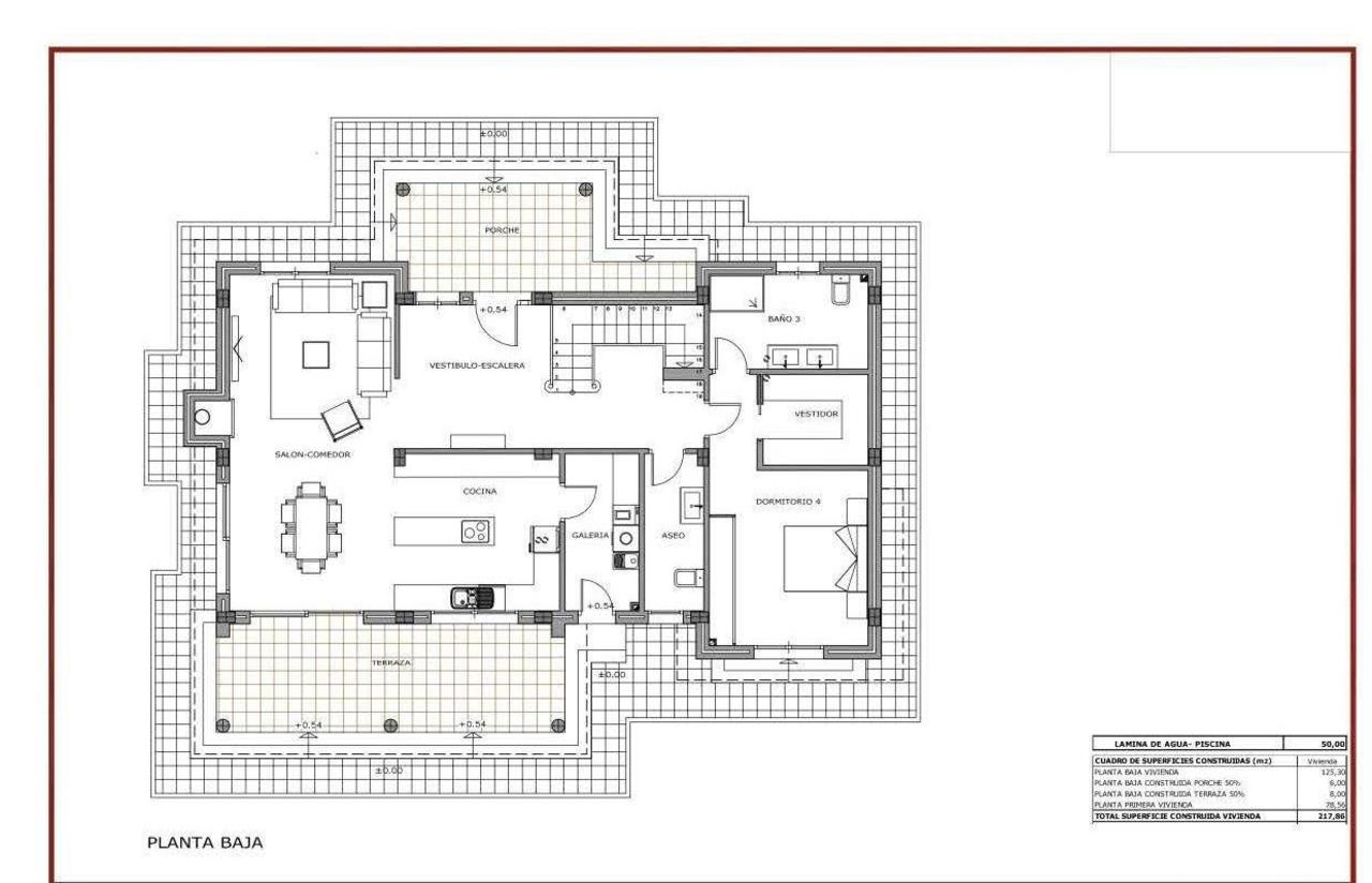 You can customise the house to your liking, most internal changes are free of charge, and you can choose finishes for tiles, kitchen worktops, marble for stairs or shelves, etc. The houses can be extended and we can even build your own design. You can add various extras such as a larger swimming pool, single or double garage, guest house, etc., at an additional cost.
