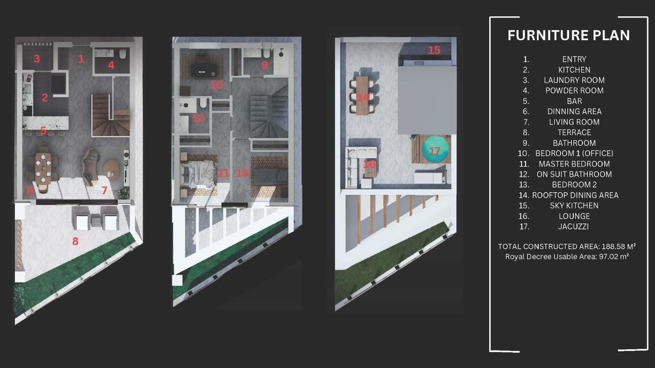 The rooftop solarium provides an ideal space to enjoy the Mediterranean climate and open sea views. This area offers the option to install a plunge pool and a summer kitchen creating a perfect setting for relaxation and entertaining.