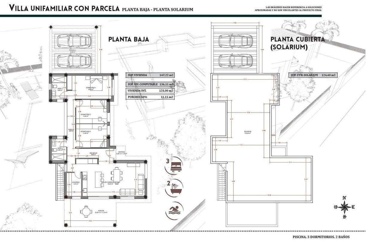 The villa is distributed on one single floor and has been designed to combine comfort, functionality and natural light. It offers 3 bedrooms and 2 bathrooms, including a master bedroom with ensuite bathroom. The open plan living and dining area connects seamlessly with the modern kitchen, creating a bright and welcoming living space.