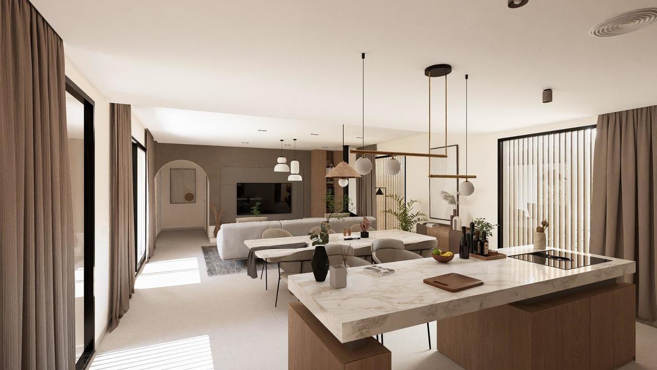 These elegant villas are designed on one level for maximum comfort and functionality. Buyers can choose between 2, 3 or 4 bedrooms and 2 or 3 bathrooms plus a guest toilet. Each home features an open plan kitchen and living area that connects seamlessly to the outdoor terrace and private landscaped garden with swimming pool. A private parking space is included within the plot, ensuring convenience and privacy.